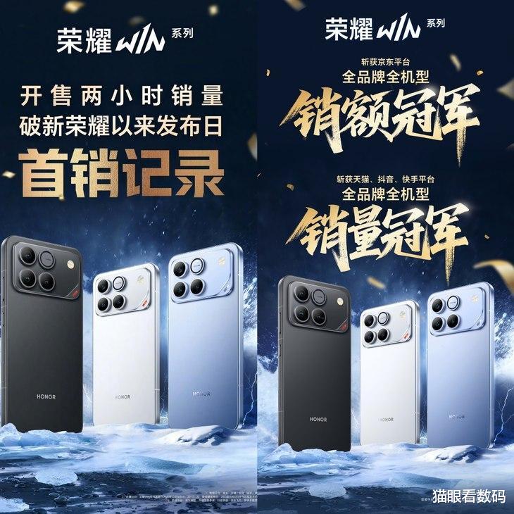 荣耀WIN系列发布以来,其热度始终居高不下。不仅创下了开售两小时销量打破新荣耀发布日首销记录的辉煌战绩,并在当天斩获京东全品牌全机型销额冠军,以及天猫、抖音、快手平台全品牌全机型销量冠军。如果说国内用户的买单是对品牌的信任,那么海外用户的“跨洋抢购”则是对产品力更纯粹的认可。
