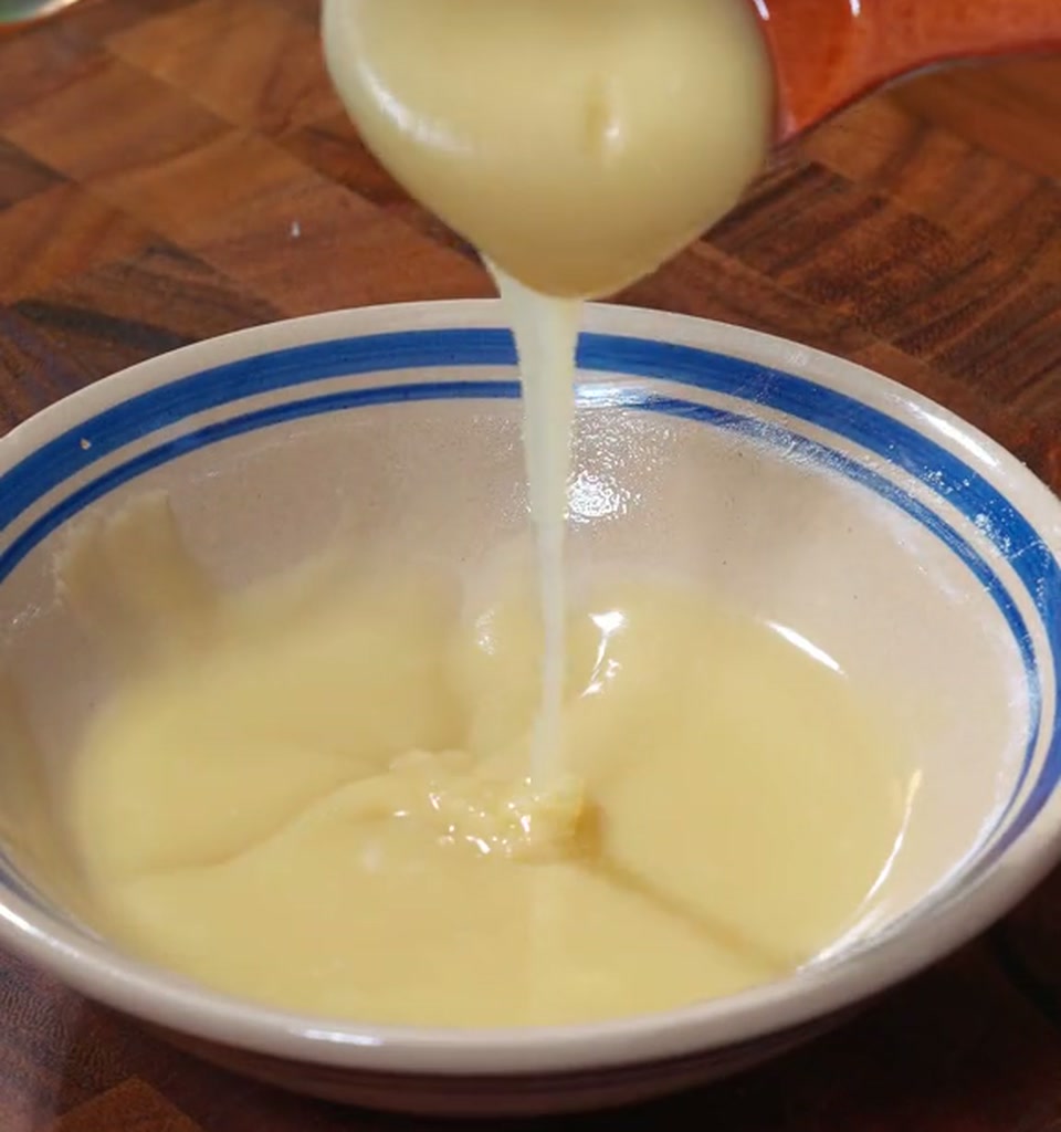 接着再来制作油酥面:3勺面粉,5勺的食用油,搅拌均匀。你看,这个状态就比酸奶稍微稠一点,像这样就可以了。我这里加的是熟油(就是烧热后放凉的油),咱们最好用熟油,这样面香味更浓。