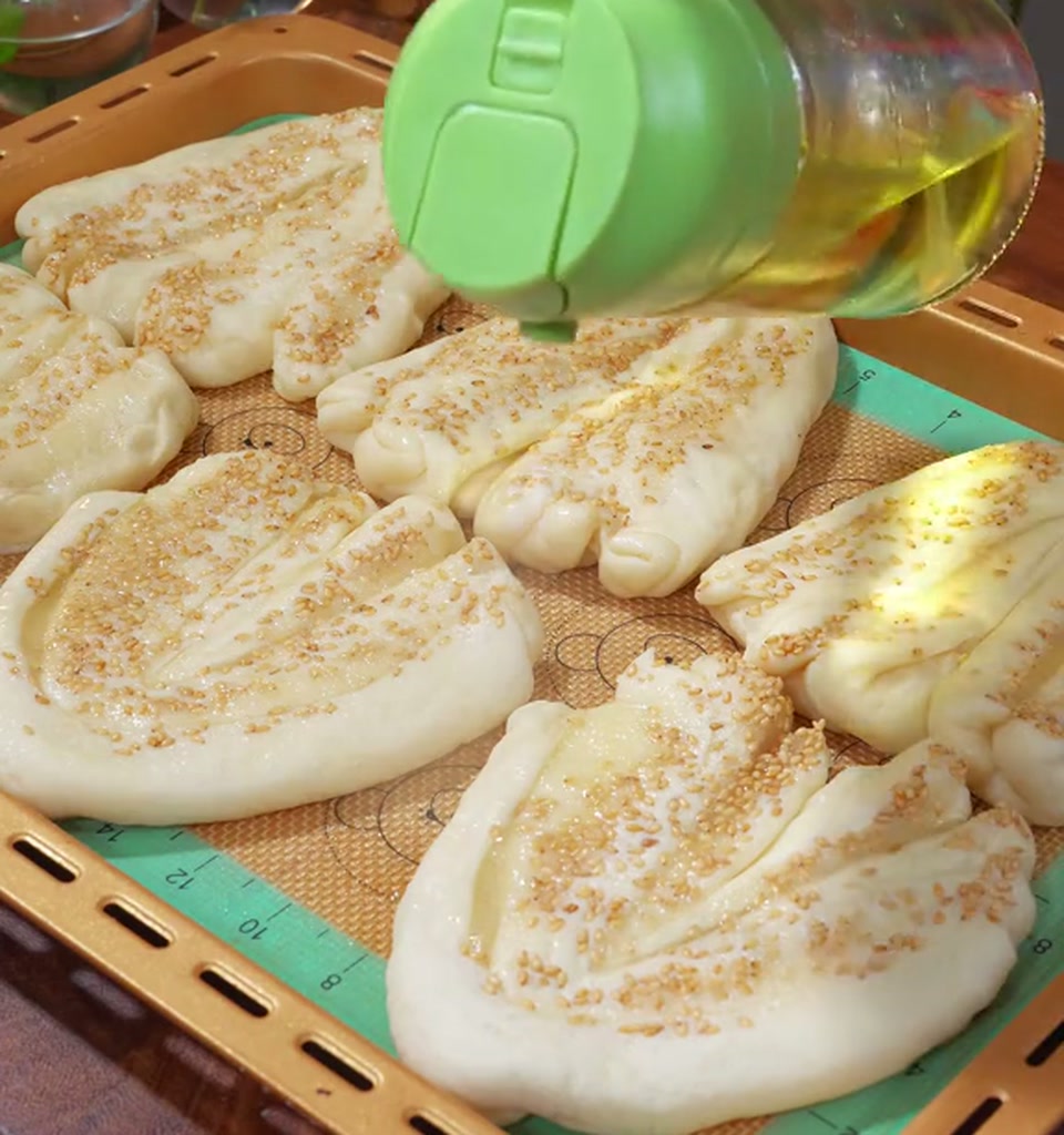 把饼胚放进盘子或者烤盘里面,表面喷上少许食用油锁住水分,盖上保鲜膜让它醒发20分钟。这步不能省,醒发后的饼才蓬松。