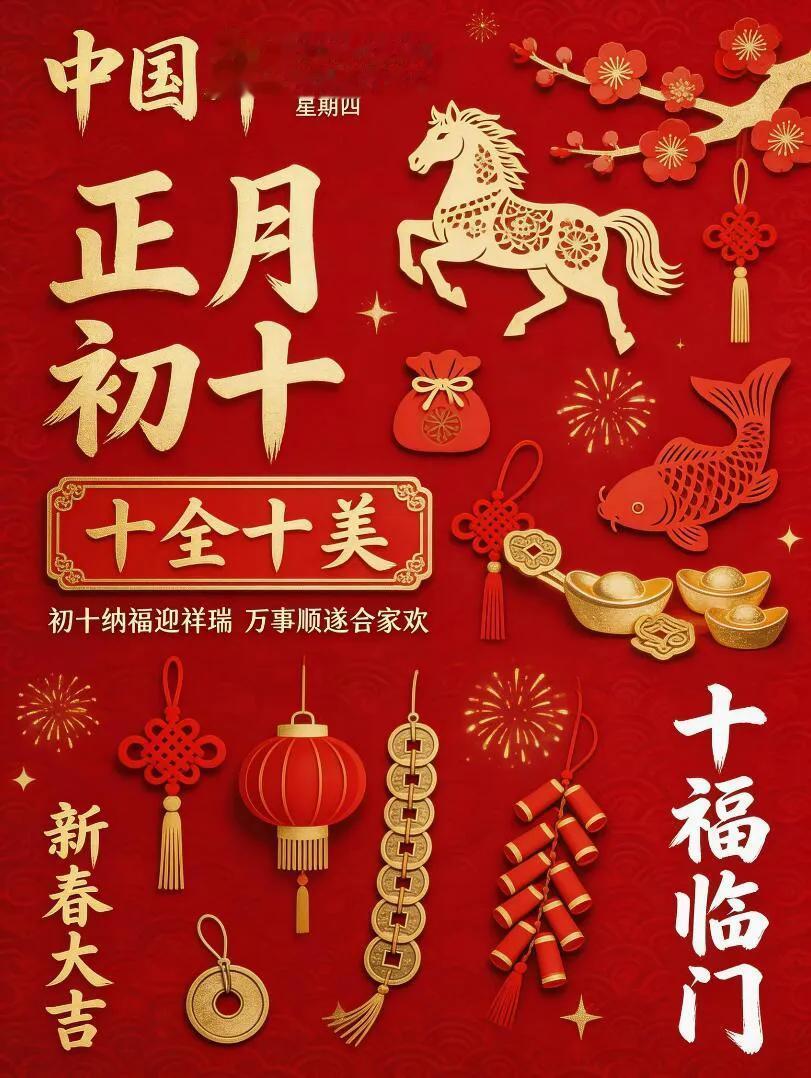今天正月初十,十全十美吉祥日,快乐幸福拥抱你,吉祥好运环绕你