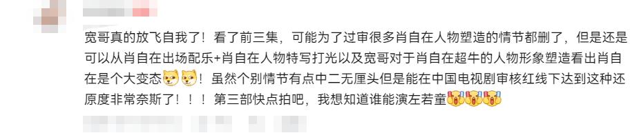 而最后也说明导演的眼光是准确的,严屹宽的演技也是好的,才能为观众呈现出犹如“撕漫男”的肖自在。