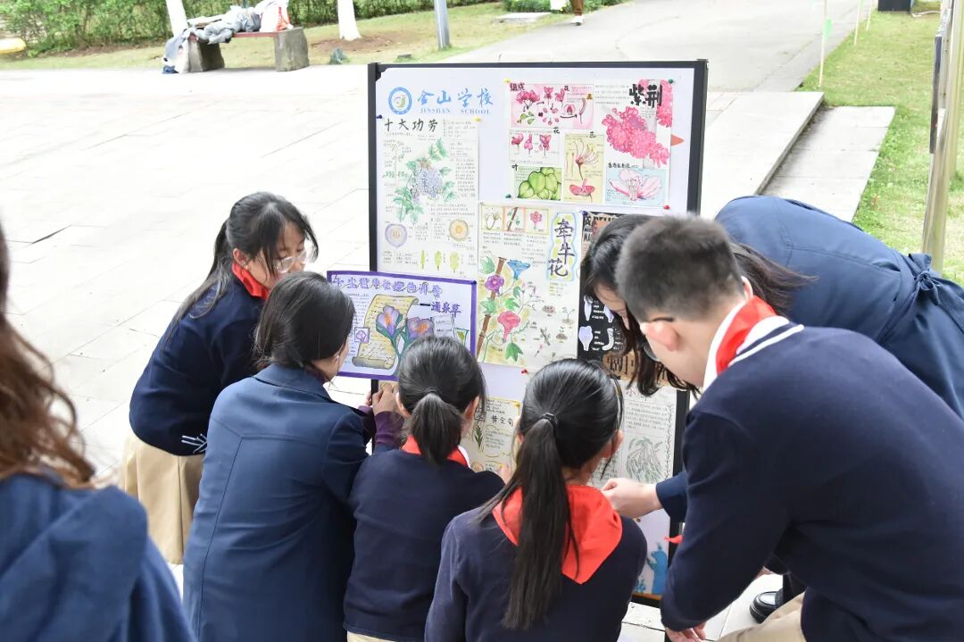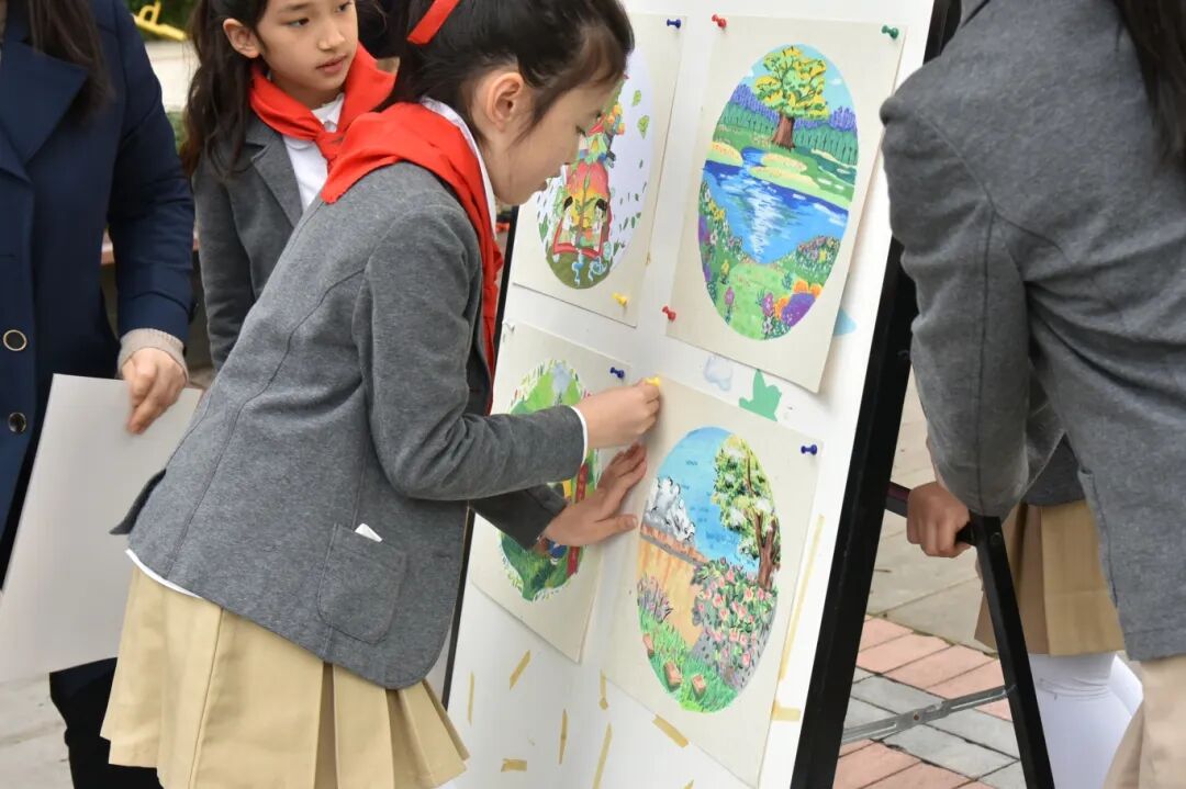 活动尾声,孩子们返回主会场分享收获,诵读诗歌、展示画作与自然笔记,引来周边居民驻足赞叹:“在公园里上课,这样的课堂太有意义了,孩子们真幸福。”这份朴素的幸福,正是金山教育集团“公园课程”的追求所在。