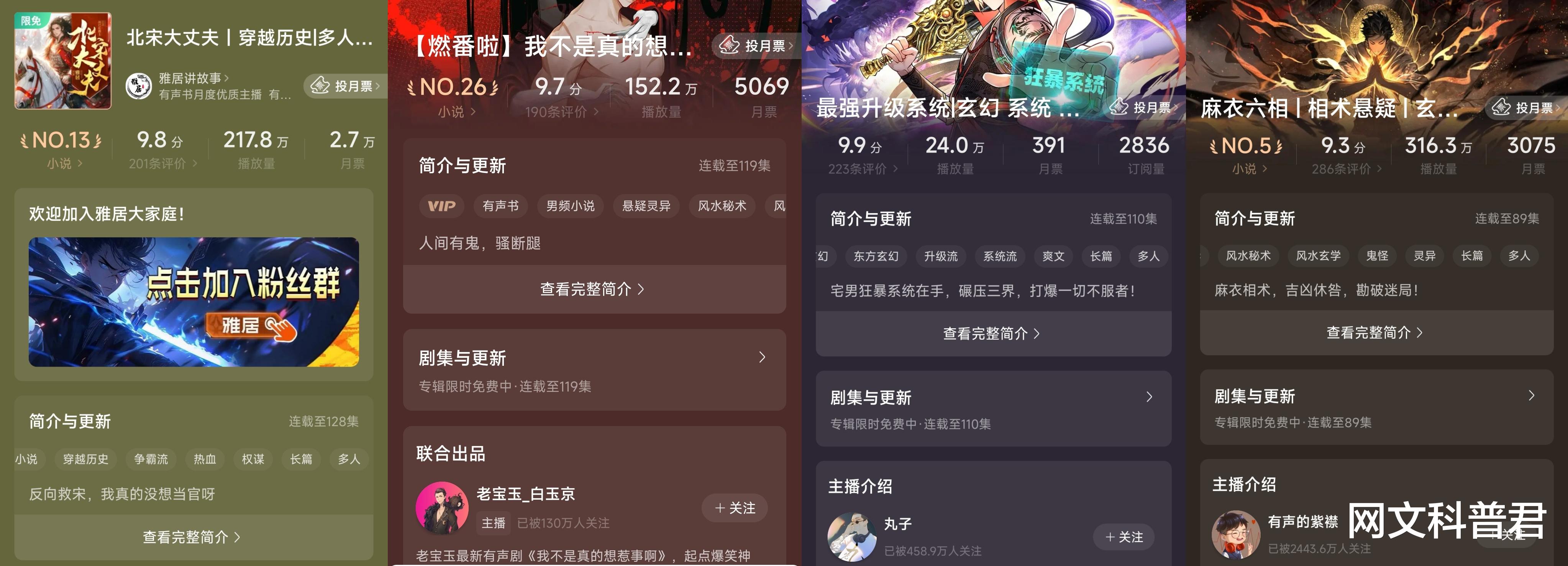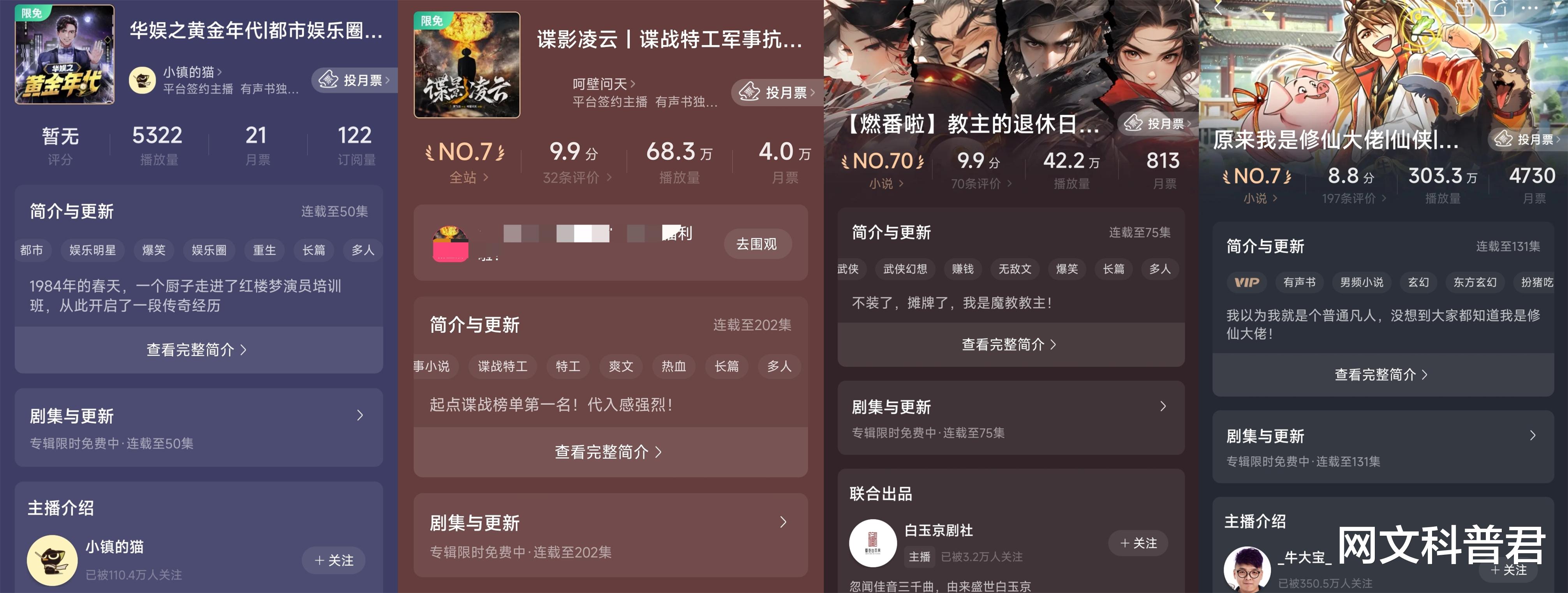 十二、《麻衣六相》《原来我是修仙大佬》《最强升级系统》《大魏芳华》《谍影凌云》《全能修仙系统》《非洲酋长》《呢喃诗章》《华娱之黄金年代》《教主的退休日常》《北宋大丈夫》《我不是真的想惹事啊》《医判》《朕的爱妃太能卷了》《霍爷,夫人又去天桥摆摊了》《夫人她马甲又轰动全城了》《婚后被大佬惯坏了》17书多人有声剧上线