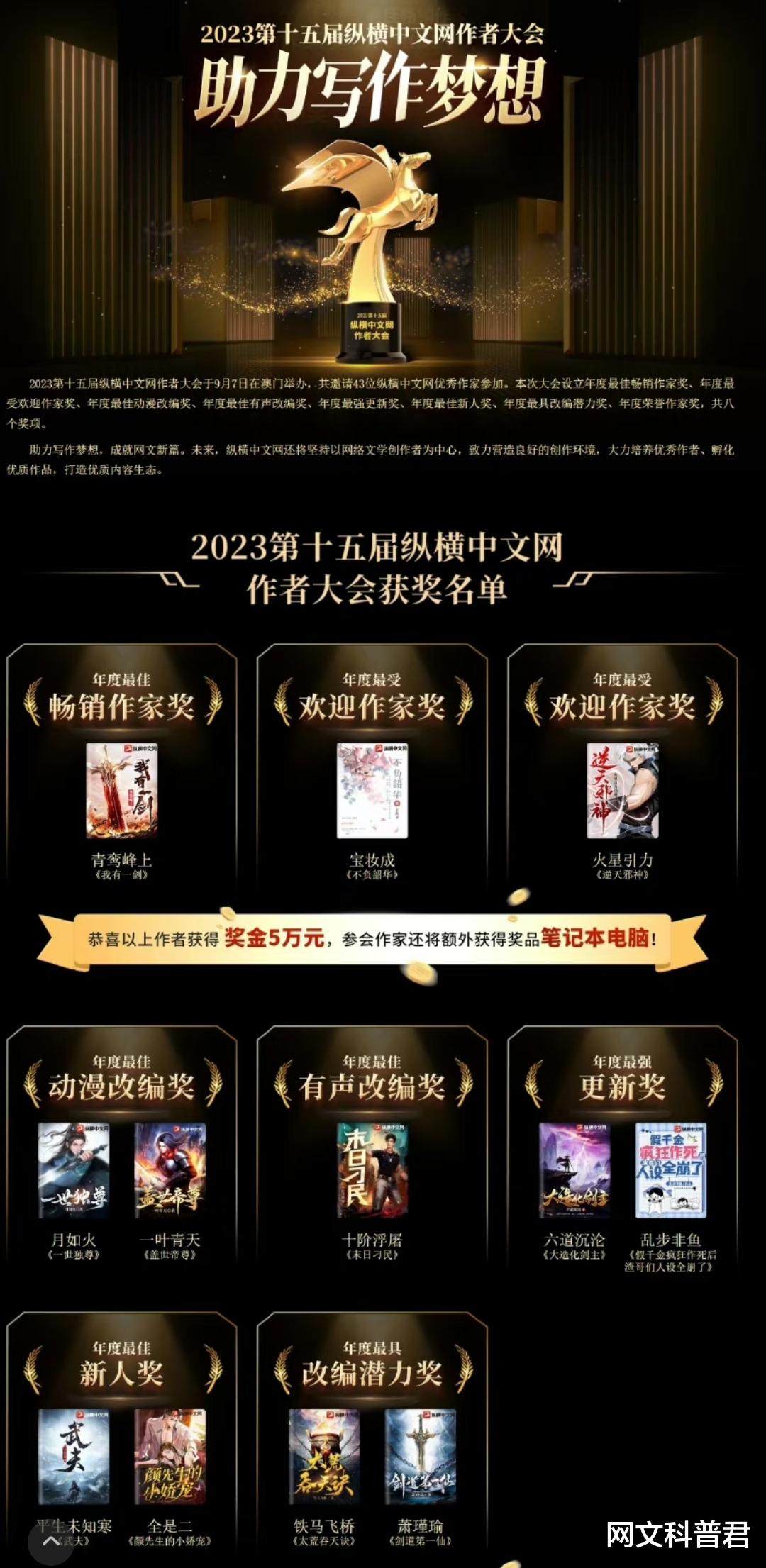 十一、纵横中文网开启第十五届作者年会,火星引力获最受欢迎作家奖
