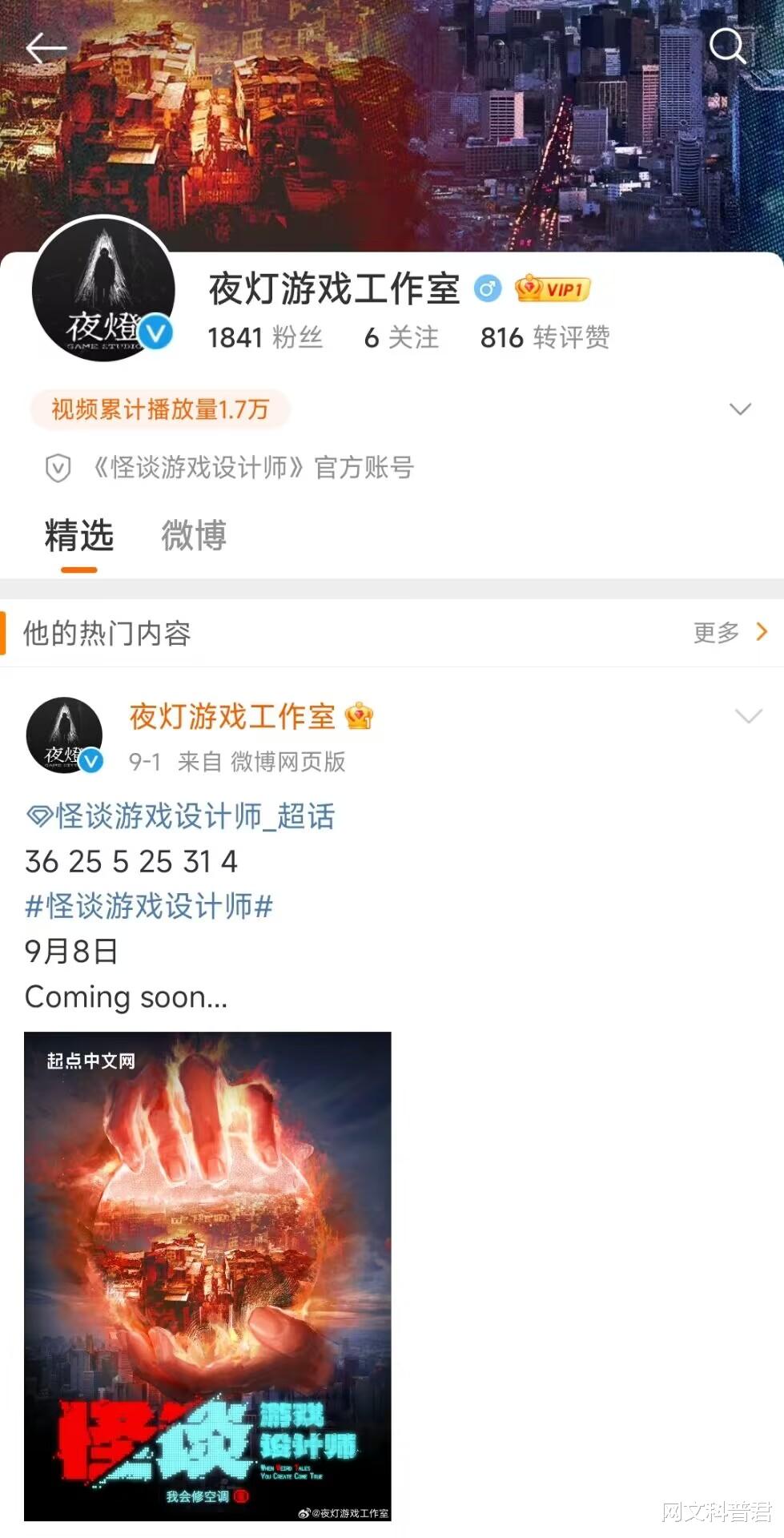 不过最有意思的一点是,空调的这本新书是起点首次帮忙在刚发书的阶段就建立小说官方微博来运营的一本书,之前宿命之环都没这待遇。