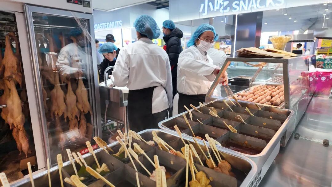 更重要的是,小吃市集将消费场景从 “功能性购物” 拓展至“社交型体验”,边逛边吃的随性、陪同家人采购的温馨、好友结伴消磨时间的惬意,让传统超市的 “目的型消费” 升级为逛 “鲸喜”的 “幸福时刻”。