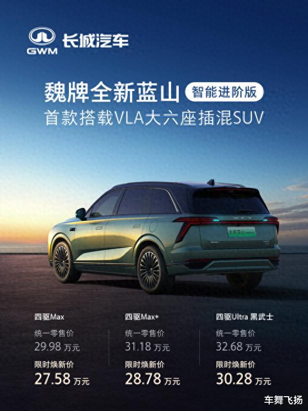 魏牌全新蓝山智能进阶版定位“首款搭载VLA大六座插混SUV”,不仅融合“听得懂、会思考、能交心”的VLA大模型与“省、远、快、稳”兼备的Hi4性能版智能四驱电混技术,实现了VLA+Hi4的高效协同,更在座舱体验与安全防护等维度实现全面进阶,为用户带来了全方位、可感知的升级体验。