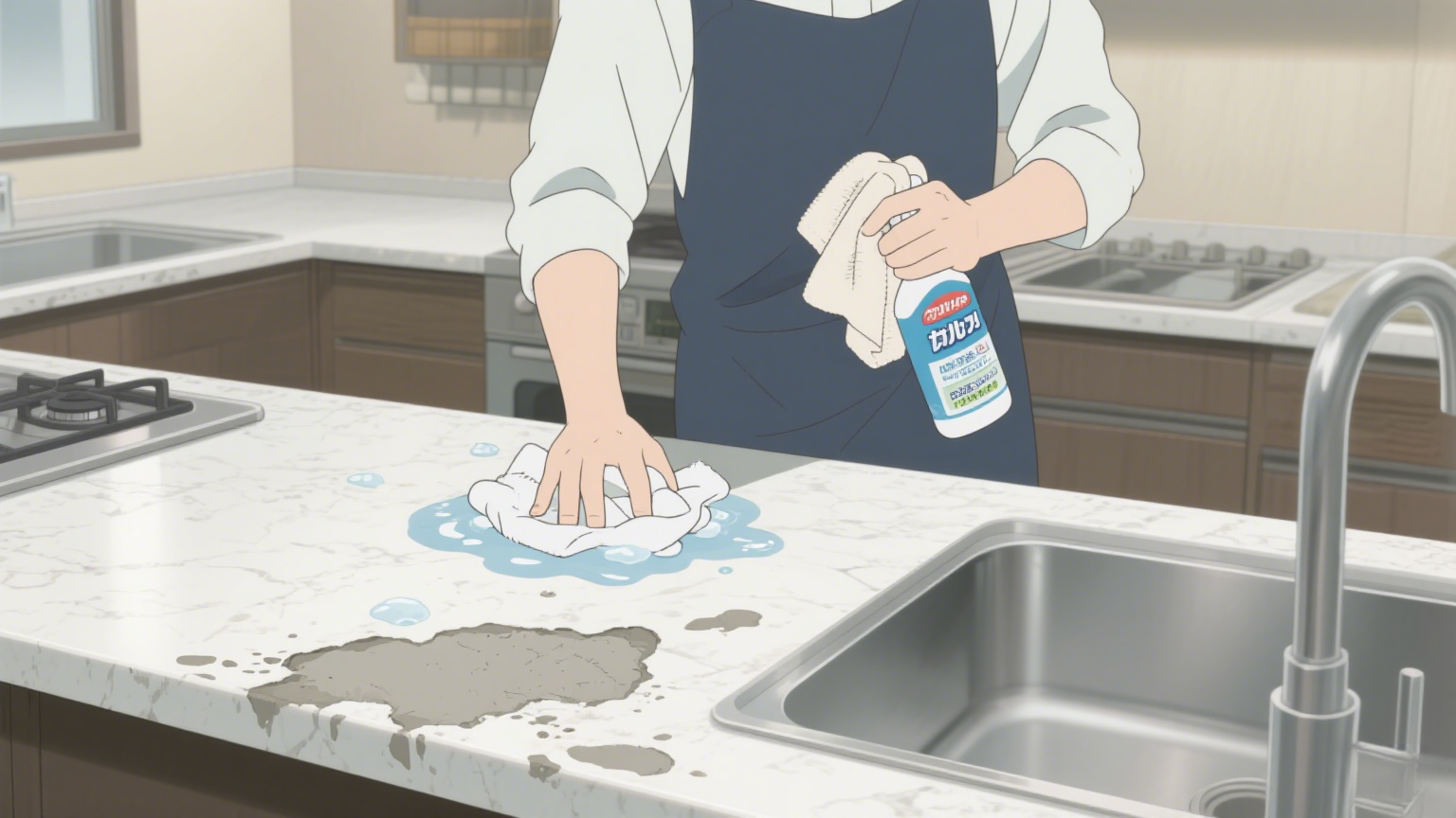 第二步:温和除渍,保护台面表层