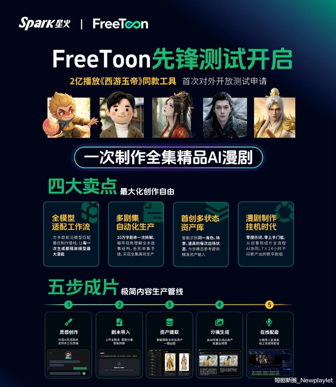不少人认为,星火的自研工具FreeToon功不可没。但事实是,星火动漫在工具、内容、平台上同步推进,将自己打造成了一个多边形战士。