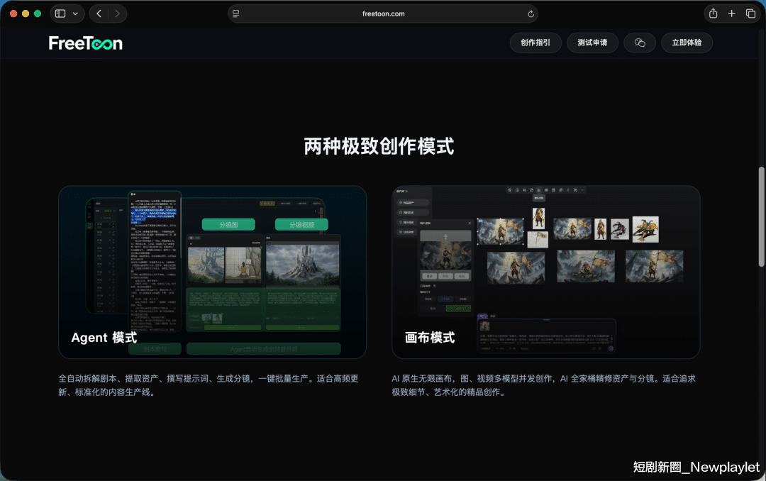 于是,在内容上,团队就开始学习短剧制作的套路,3秒一个钩子、5秒一个冲突反转。工具侧,FreeToon省去了手动码提示词的操作,将上万字全集剧本的导入,不仅有Agent能自动生成提示词、自动提取多状态资产,还做了Agent+画布双模式交互。实现了全本高度自动完成脚本拆解,能够对制片全流程接管。