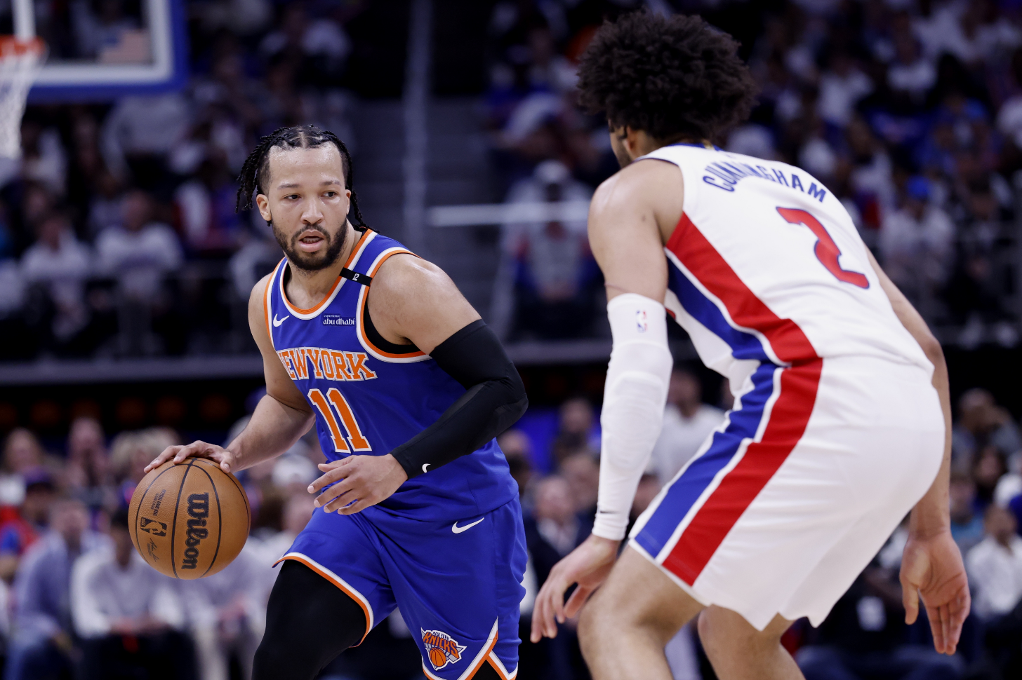 比赛开始,尼克斯打出9-2开局,活塞开局慢热后坎宁安里突外投连砍8分带队打出攻击波直接反超,尼克斯全民皆兵回应,首节活塞领先2分,次节双方展开拉锯战,活塞接连内线暴扣建立微弱领先,尼克斯外线始终不开,活塞7-0领先到10分。