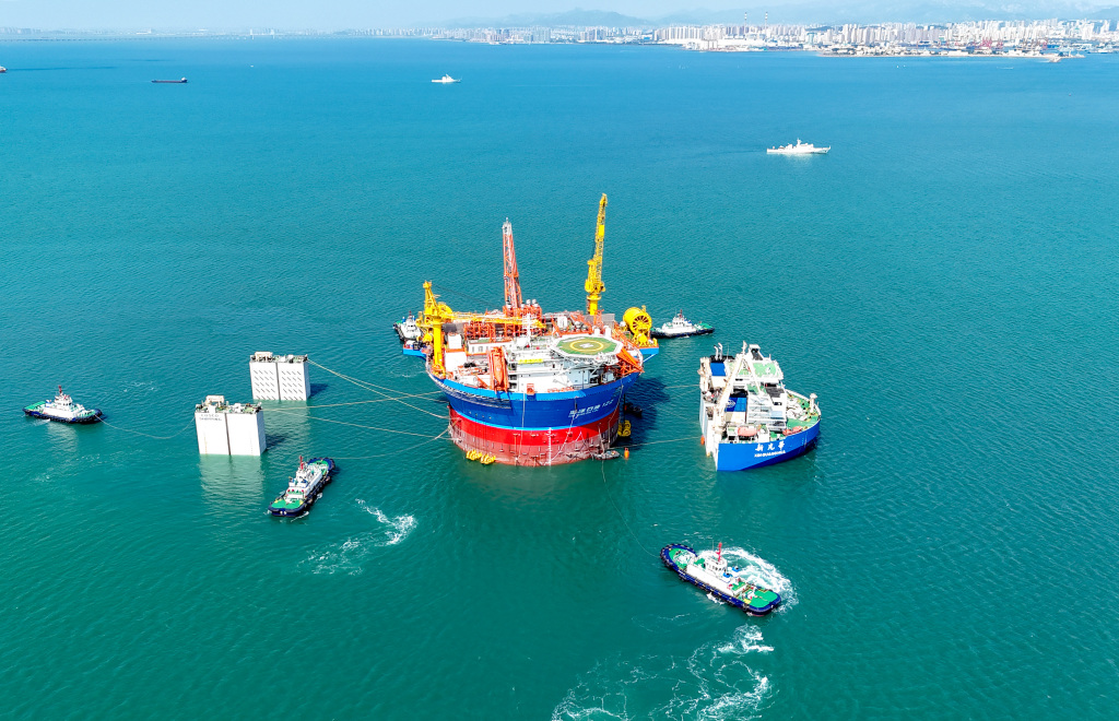 我国自主设计建造的亚洲首艘圆筒型“海上油气加工厂”——“海葵一号”从海西湾离港启运(张进刚 摄)