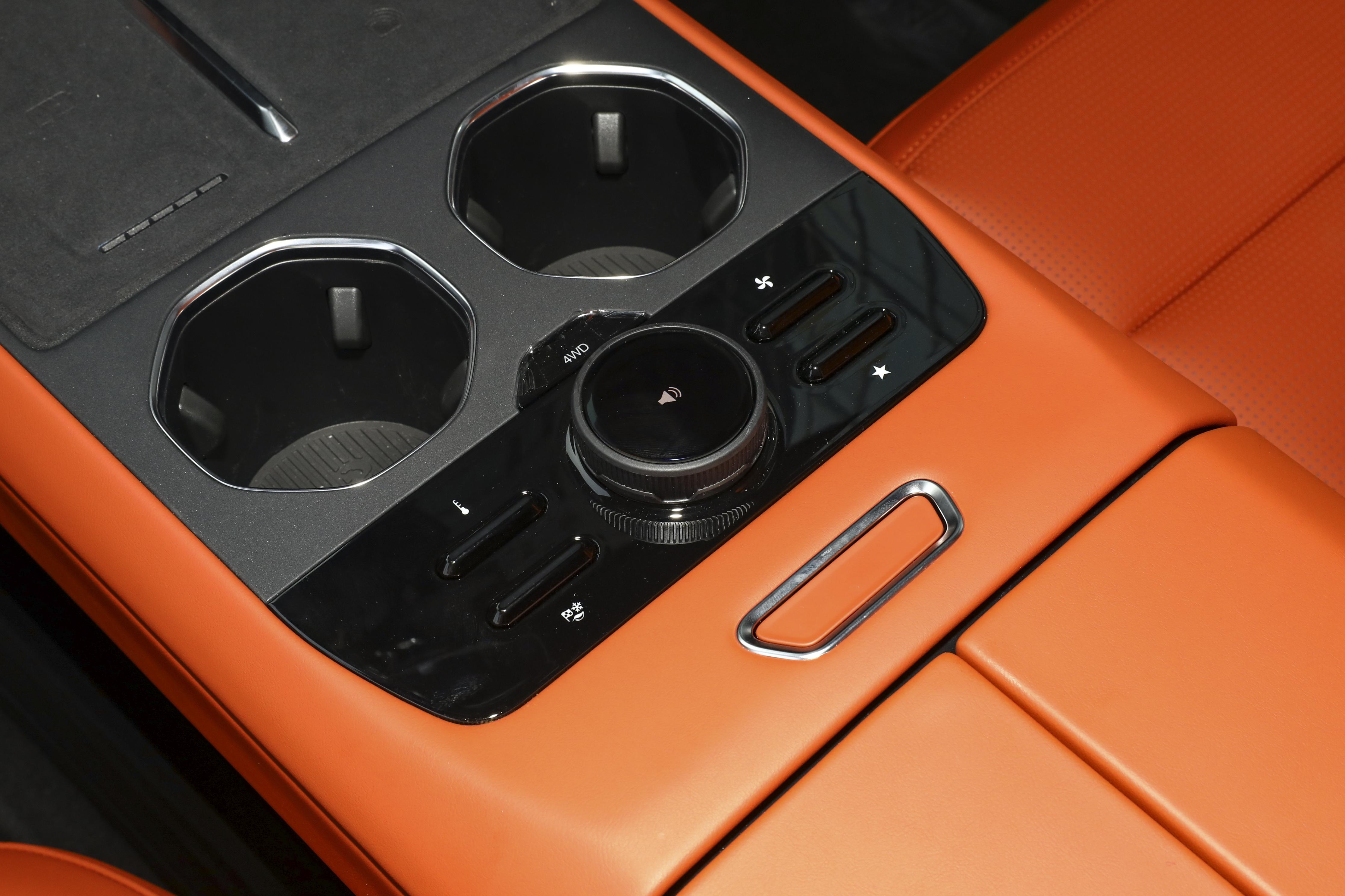 舒适方面更是贴心,全车座椅均可电动调节,前排座椅带加热、通风和按摩功能,主驾还有记忆调节,冬天不冷夏天不闷,长途开车也不累;后排座椅能调靠背角度,坐久了也不憋屈;21个扬声器组成7.1.4声道音响系统,音响音质不错,不管是通勤听歌还是露营K歌都很舒服。还有双区空调、方向盘加热、50W无线快充这些实用配置。另外,内饰里还有不少为越野设计的细节,电子怀挡不占地方,越野模式用实体按键控制,也能盲操作;经常接触的地方用了防刮材质,露营回来弄脏了擦一擦就干净,特别省心。