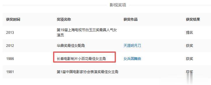 1986年,她凭着《女兵圆舞曲》,拿下了长春电影制片厂小百花最佳女主角奖,