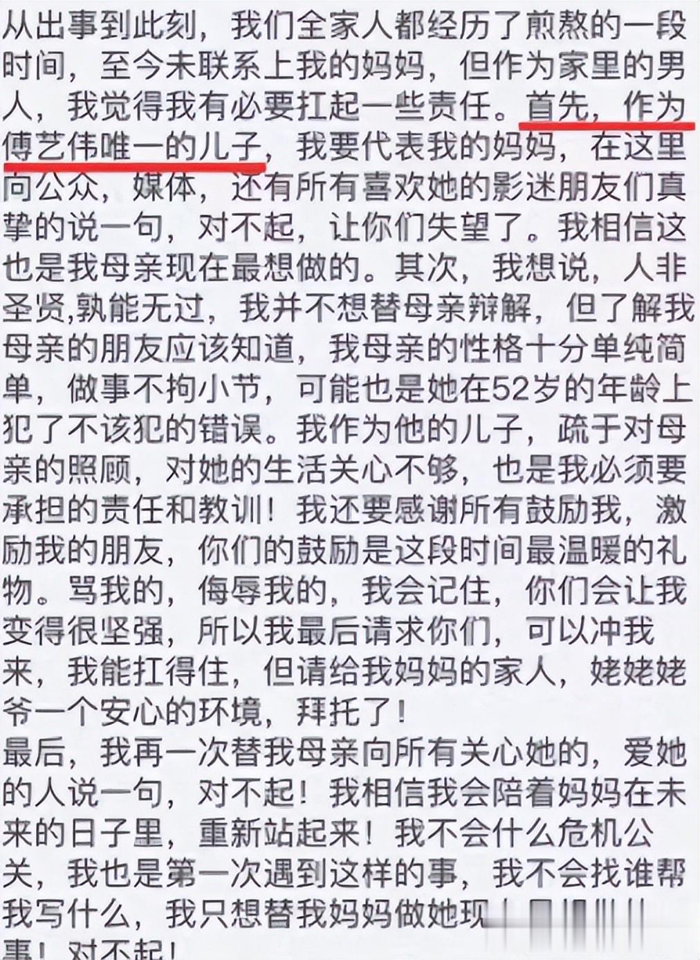 在傅艺伟出了涉毒风波,被全网指责的时候,高乐男没有选择逃避,而是第一时间站出来,替妈妈道歉。