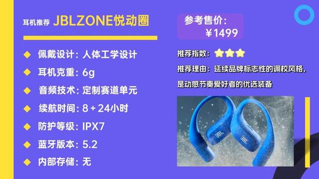 JBLZONE悦动圈延续品牌标志性动感调音风格,主打强劲低频,适合想用音乐提升运动状态的节奏爱好者。