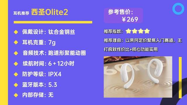 西圣Olite2主打入门级市场,以极低价格和实用核心功能为主打,精准满足健身新手与预算有限用户的需求,是一款务实型入门运动耳机。