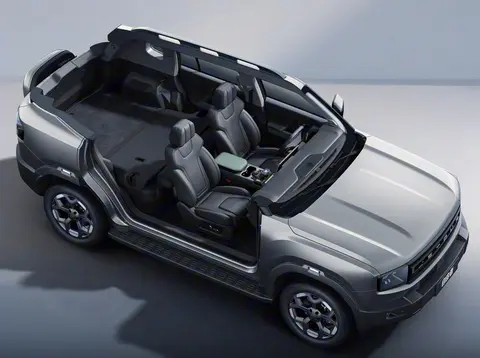 车身侧面,18英寸越野轮毂搭配全地形轮胎,搭配黑色轮眉与侧踏板,硬派气息扑面而来。车顶行李架采用加粗设计,可承载帐篷、户外装备等重物,满足长途露营需求。新车最引人注目的升级在于车尾,在车尾将“小书包”造型的装饰作为标准配置,这种经典的越野车型设计不仅提升了视觉辨识度,更让整车的硬派风格更加纯粹,成为街头一道独特的风景。