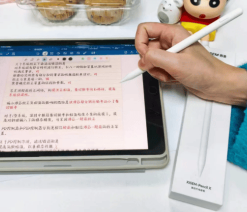 这款手写笔支持磁吸充电,满电后续航达12h,续航能还还不错,适合有长时间使用需求的群体。在设计上,它的整体造型萌趣,很有设计感。在握持手感方面,单笔重量约在13g,握持感较为轻盈,使用起来手腕无负担。在书写体验方面,它采用了经过特殊处理的笔尖,而且还具备防误触功能和倾斜压感,书写起来比较顺滑,很少出现卡顿和延迟的情况。此外,还支持双击笔帽自动截屏,无需额外操作,实用性较高。