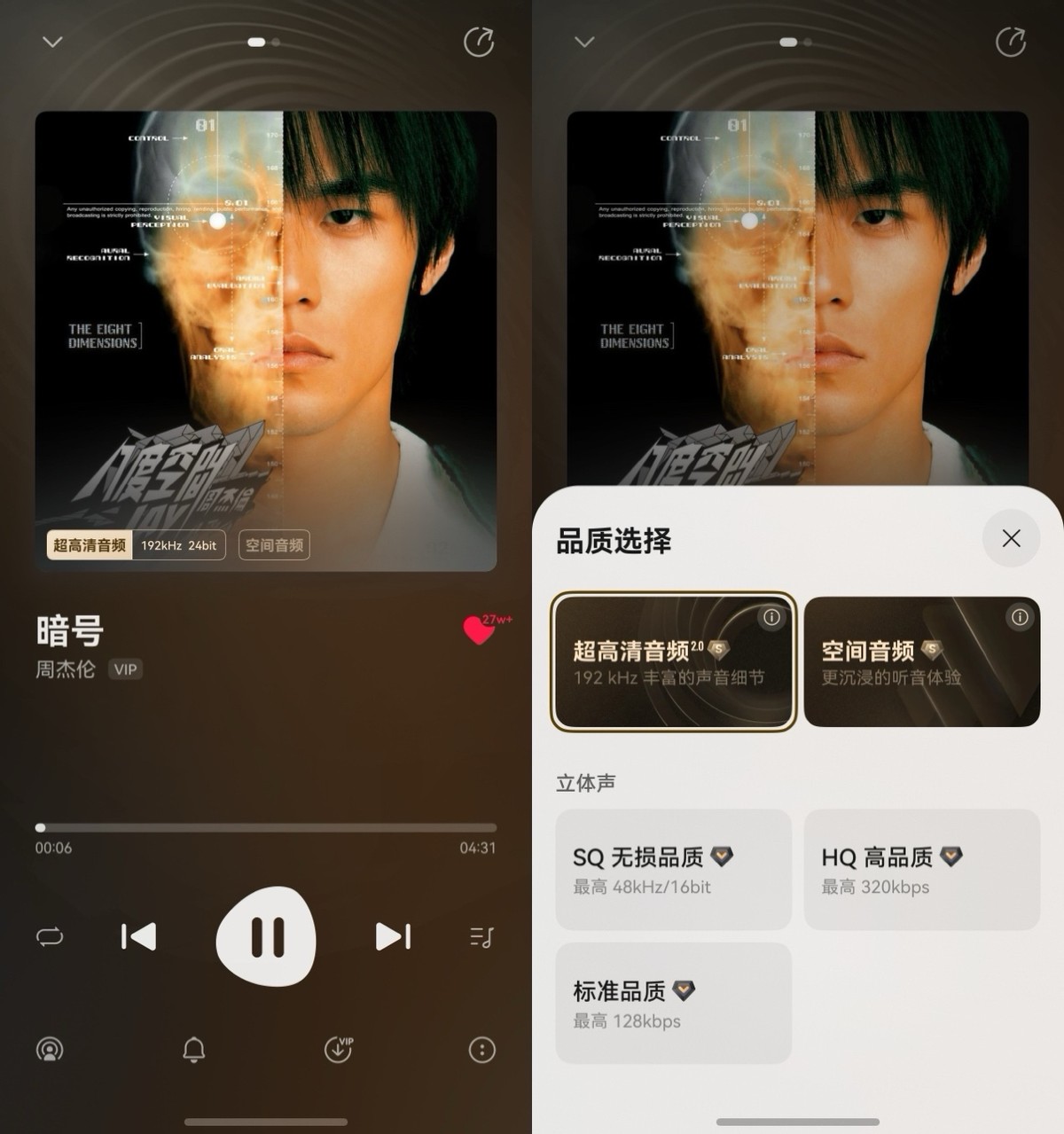 当然,好的音质也必不可少。在华为音乐里,我还能根据设备来切换“空间音频”或者“超高清音频”。比如用耳机听周杰伦的《暗号》时,打开空间音频,整个人都好像被声场包裹,仿佛置身音乐厅演奏现场。而用手机外放或者连接音响时,我会选择超高清音频,声音更显真实细腻。
