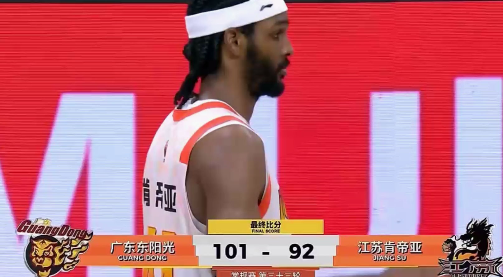 凭借嘉哥和萨老英雄连续拿到的关键6分,最后一分半钟,广东队101-89基本锁定胜局,最终,广东队没有再给江苏队机会,以101-92小胜江苏,拿下二番战复仇之战。