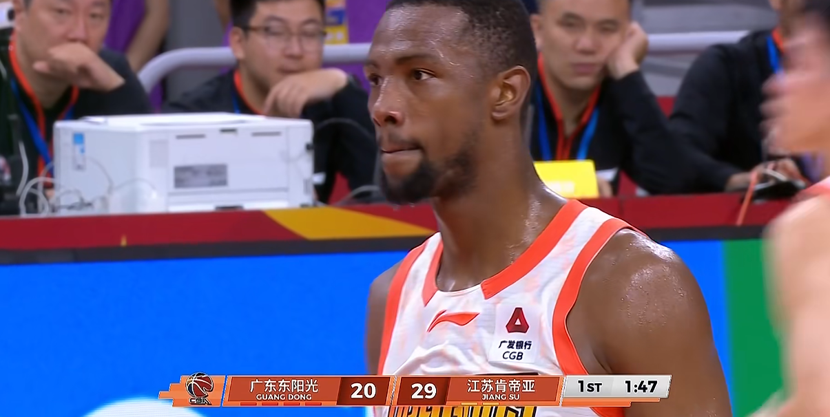 7分17秒,陈家政战术犯规贾尔斯被裁判追加违体,随后还出现投篮二运违例,这波违体+失误非常伤士气,江苏开始起势,贾尔斯2罚,亨特中投+反击造2+1,李承耀2+1,江苏4回合连得9分反超广东。