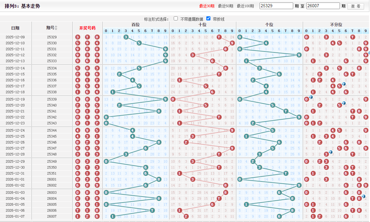 百位覆盖高频热号,走势稳健;十位冷热搭配,兼顾连号潜力;个位重号、邻号占比高,机会凸显。