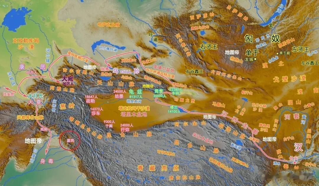 图-张骞第二次出使西域,注意罽[jì]宾的位置