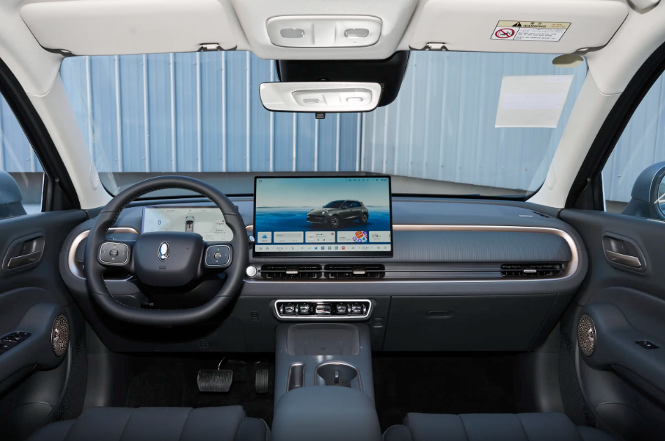 欧拉5 EV的内饰设计风格,属于当前最常见的风格之一,为了呼应外观,内饰加入一些圆角矩形状元素,看起来不至于太过单调。全系标配15.6英寸悬浮式中控屏和10.25英寸悬浮式仪表盘,配备语音识别控制系统、应用商店、车联网等常用功能,这些都是当前市面上比较常见的配置,实际操控体验也没什么问题。