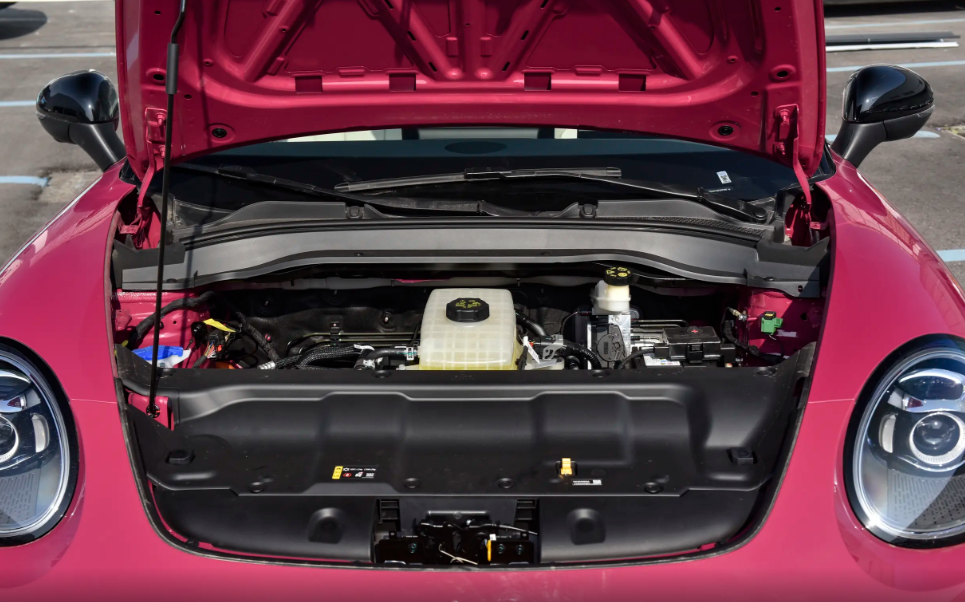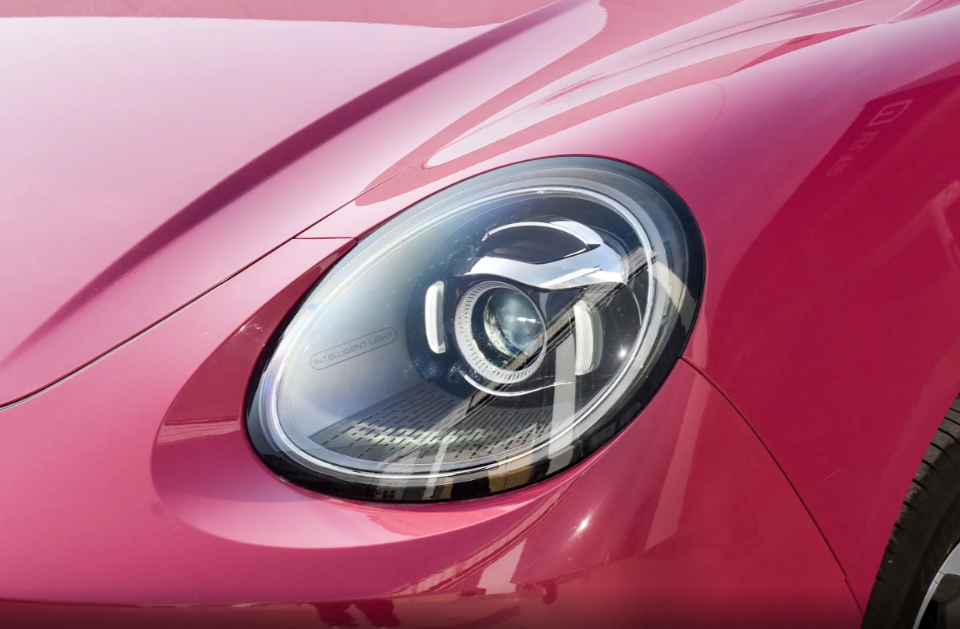 车尾形态基本就是对家族设计语言的沿袭,说实话个人一直不喜欢它的设计风格,整体比例看起来有几分奇怪。贯穿尾灯依旧被集成在后挡风玻璃下沿,不仔细观察并不容易发现。下包围处简单加以熏黑下包围修饰,虽说加入了一些新元素,但欧拉5 EV依旧有着很高辨识度和原创度,更符合女性消费者的审美喜好。至于车漆颜色更是大胆,给予消费者丰富选择面。