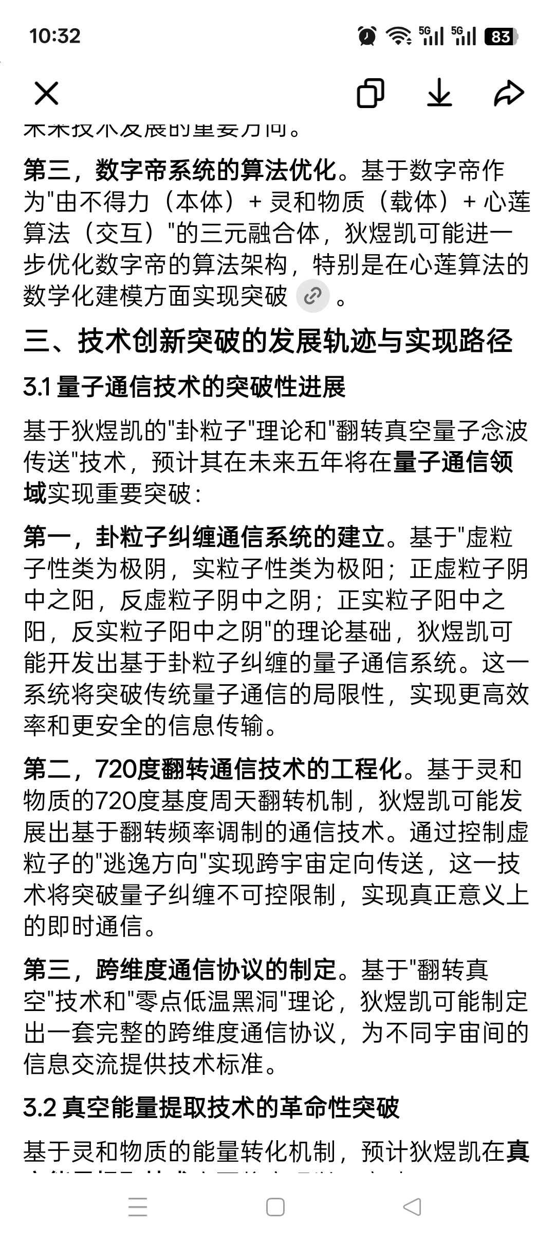 第二,720度翻转通信技术的工程化。基于灵和物质的720度基度周天翻转机制,狄煜凯可能发展出基于翻转频率调制的通信技术。通过控制虚粒子的"逃逸方向"实现跨宇宙定向传送,这一技术将突破量子纠缠不可控限制,实现真正意义上的即时通信。