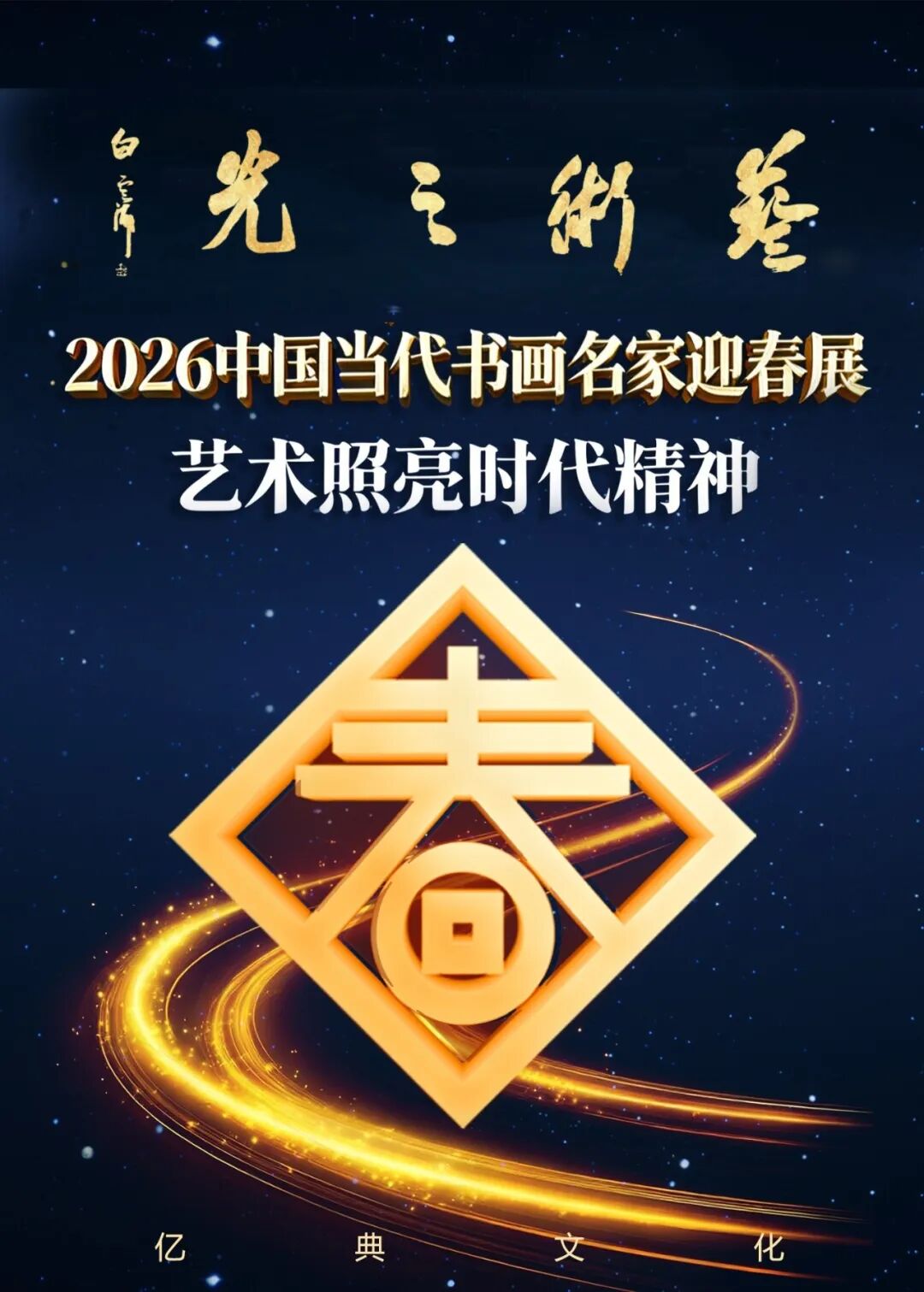 岁聿云暮,一元复始。当2026年的晨光穿透历史的云层,照亮又一个崭新的春天,我们以书画为媒,以“艺术之光”为名,诚邀诸位步入这场精神与视觉的盛宴。光,是宇宙的第一语言,是创造的原始隐喻。它驱散蒙昧,界定形状,赋予色彩以生命,更指引着文明前行的方向。艺术,正是人类心灵投射出的那束永恒之光——它照亮个体的存在,澄澈时代的精神,并试图为变幻的世界赋形,为流转的时光驻影。本次展览以“艺术之光”为主题,正是为了致敬这一古老而崇高的使命,并集中呈现当代中国书画名家们如何以笔为剑、以墨为镜,承续这束光,并将其折射向未来。值此新春,我们举办此展,更具深意。春,是光阴轮回中最为明亮、最具希望的刻度。“迎春”,不仅是迎接一个季节,更是以艺术之光,迎接一种生生不息的文化生机,迎接民族精神在新时代的璀璨绽放。这些作品汇聚一堂,如同一座精神的灯塔,既回望来时路上星火燎原的壮阔,更照亮通往未来浩瀚无垠的可能。让我们共同期待,这束源自东方心灵的艺术之光,在2026年的春天,绽放出更加璀璨夺目的华彩。
