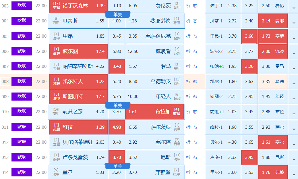 周四007 欧联杯 帕纳辛纳 VS 罗马