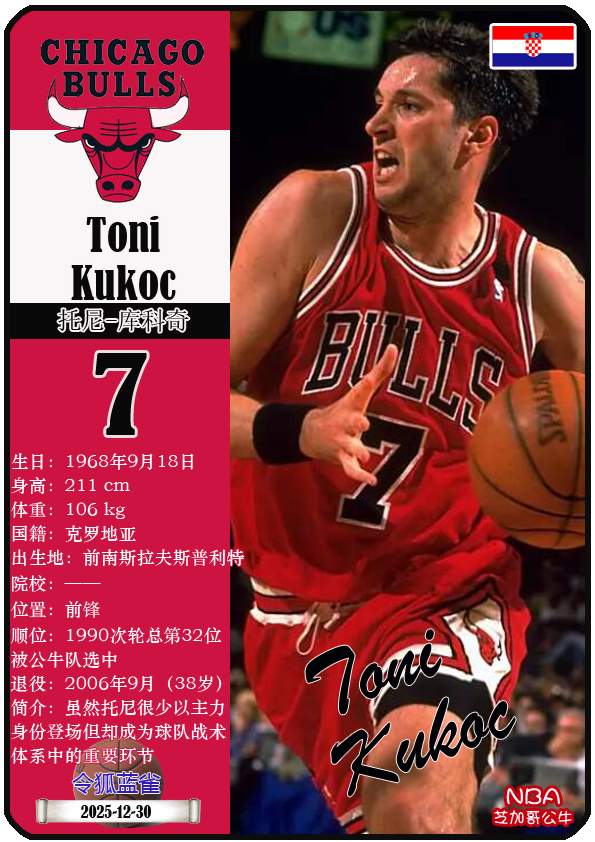 NBA1996-97赛季,拥有迈克尔-乔丹、斯科蒂-皮蓬、丹尼斯-罗德曼的芝加哥公牛队战胜了斯托克顿、卡尔-马龙领衔的犹他爵士队夺得NBA总冠军,乔丹拿到个人职业生涯第五座总冠军奖杯。本期盘点1996-97赛季芝加哥公牛队夺冠阵容(按球衣号码排序):