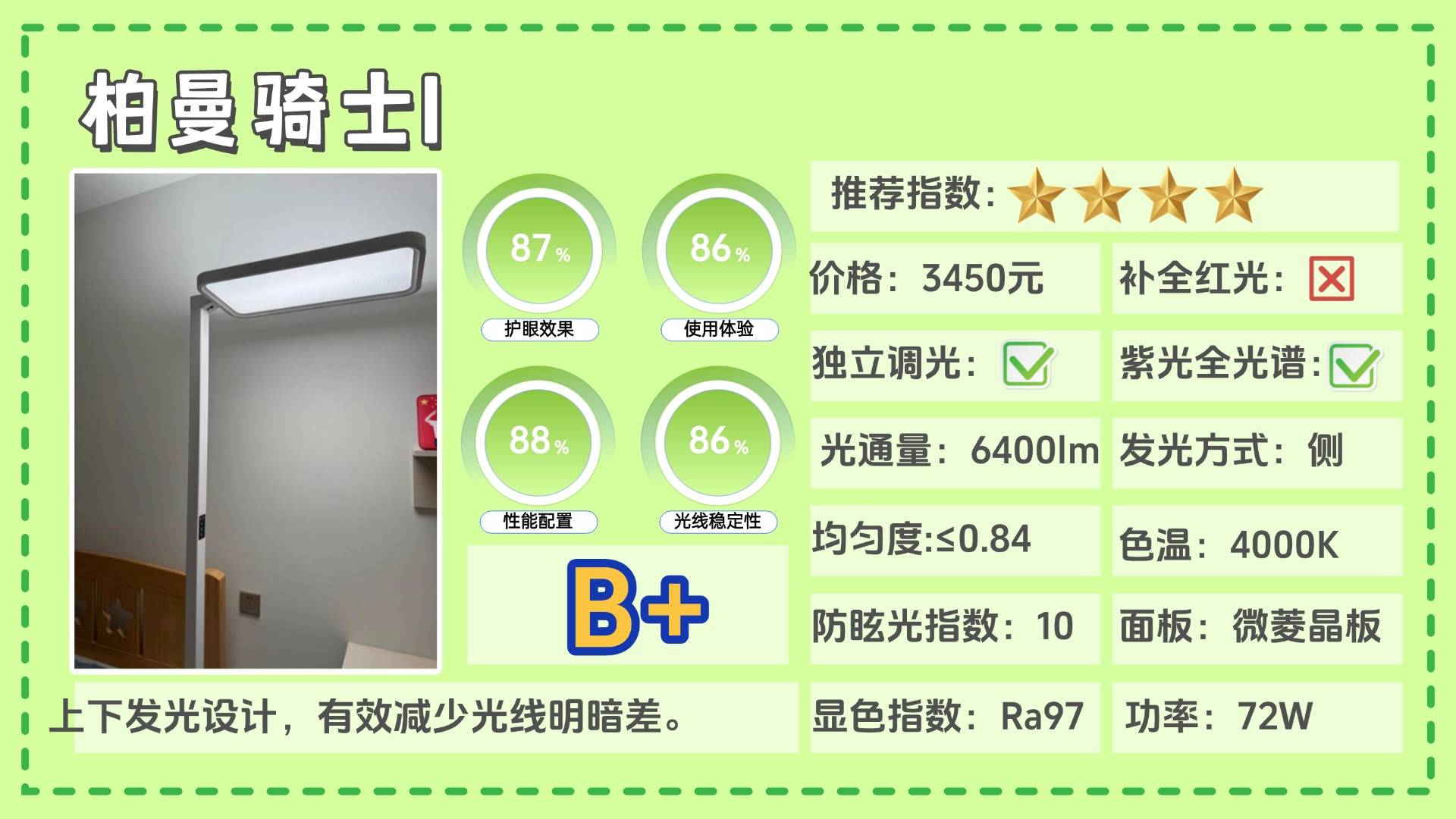 上榜理由:上下发光设计,有效减少光线明暗差。