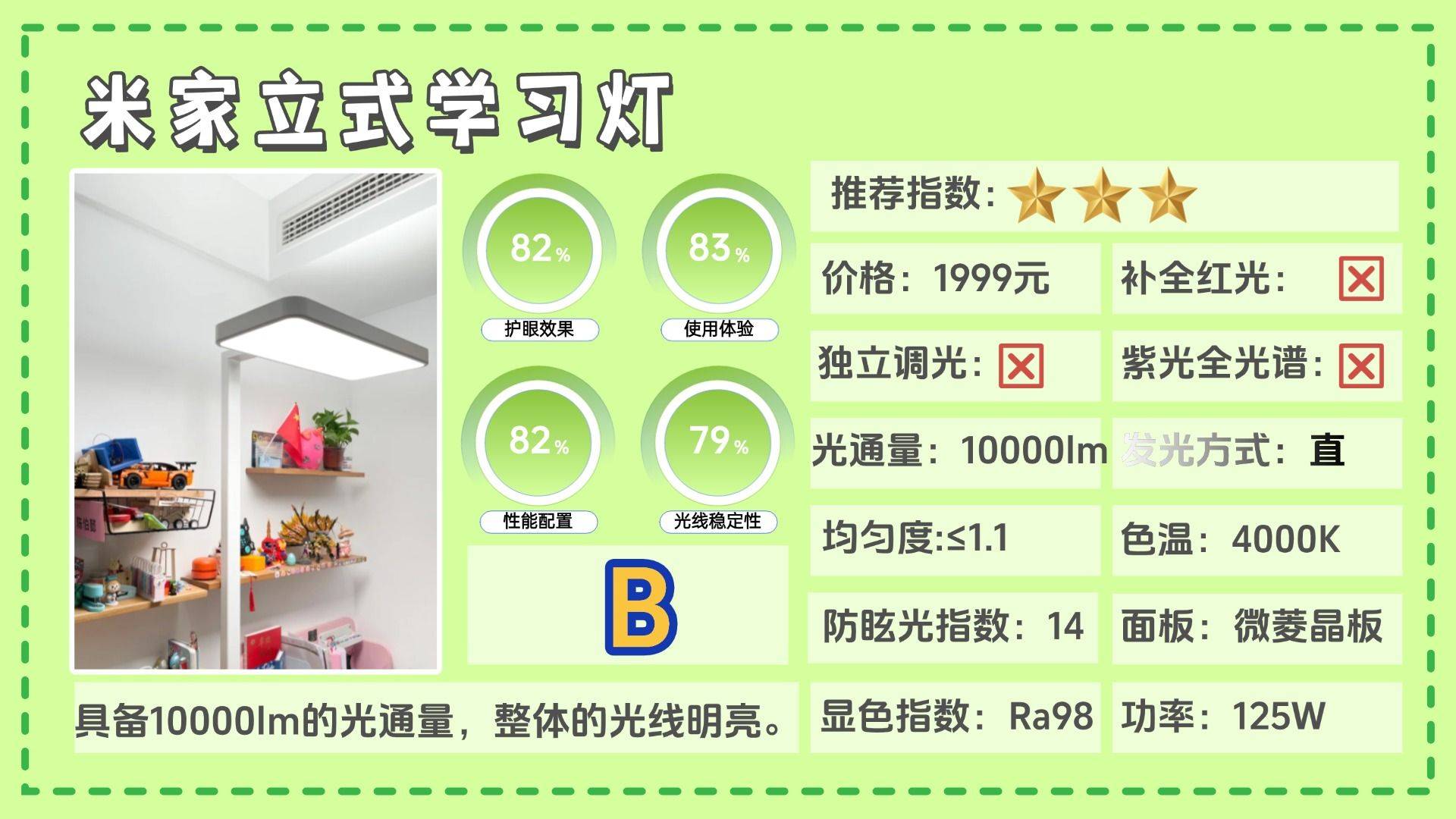 上榜理由:防眩指数约为 12.1,处于一个符合照明标准的范畴。