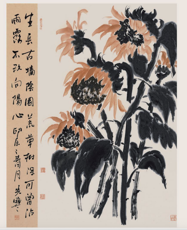 (干旱犹思晴畅好 倾心应向日东西96cmx80cm 纸本设色李光寒 )