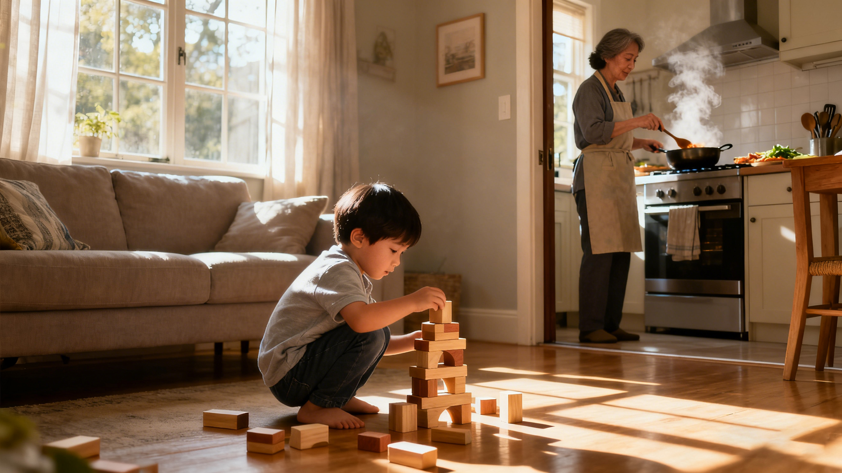 那个周六的午后,阳光懒洋洋地洒在地板上,我三岁的儿子正在客厅里搭积木,我妈在厨房里哼着小曲准备晚餐,空气里弥漫着饭菜的香气和岁月静好的味道。