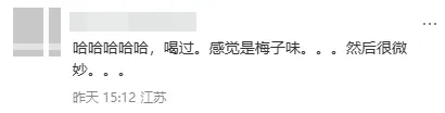 还有网友表示:“感觉是梅子味......然后很微妙。”