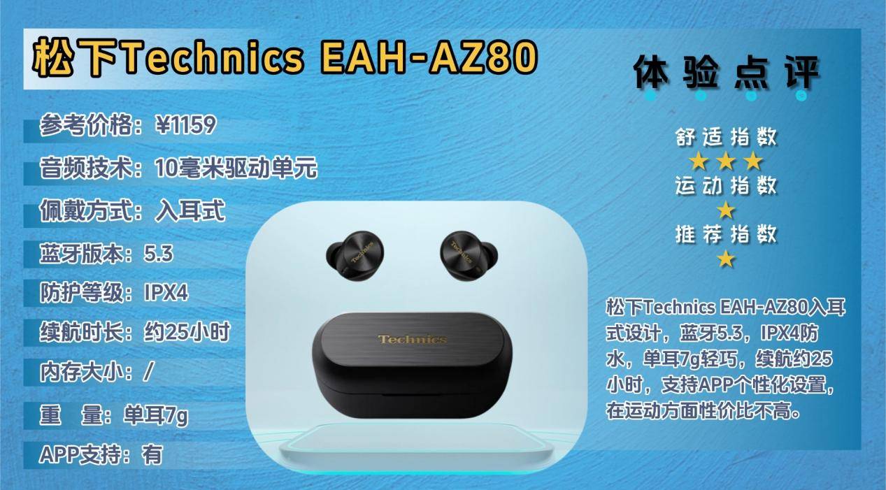 松下Technics EAH-AZ80主打高保真音质与日常使用体验,属于偏向音乐爱好者和办公通勤用户的高端入耳式耳机。
