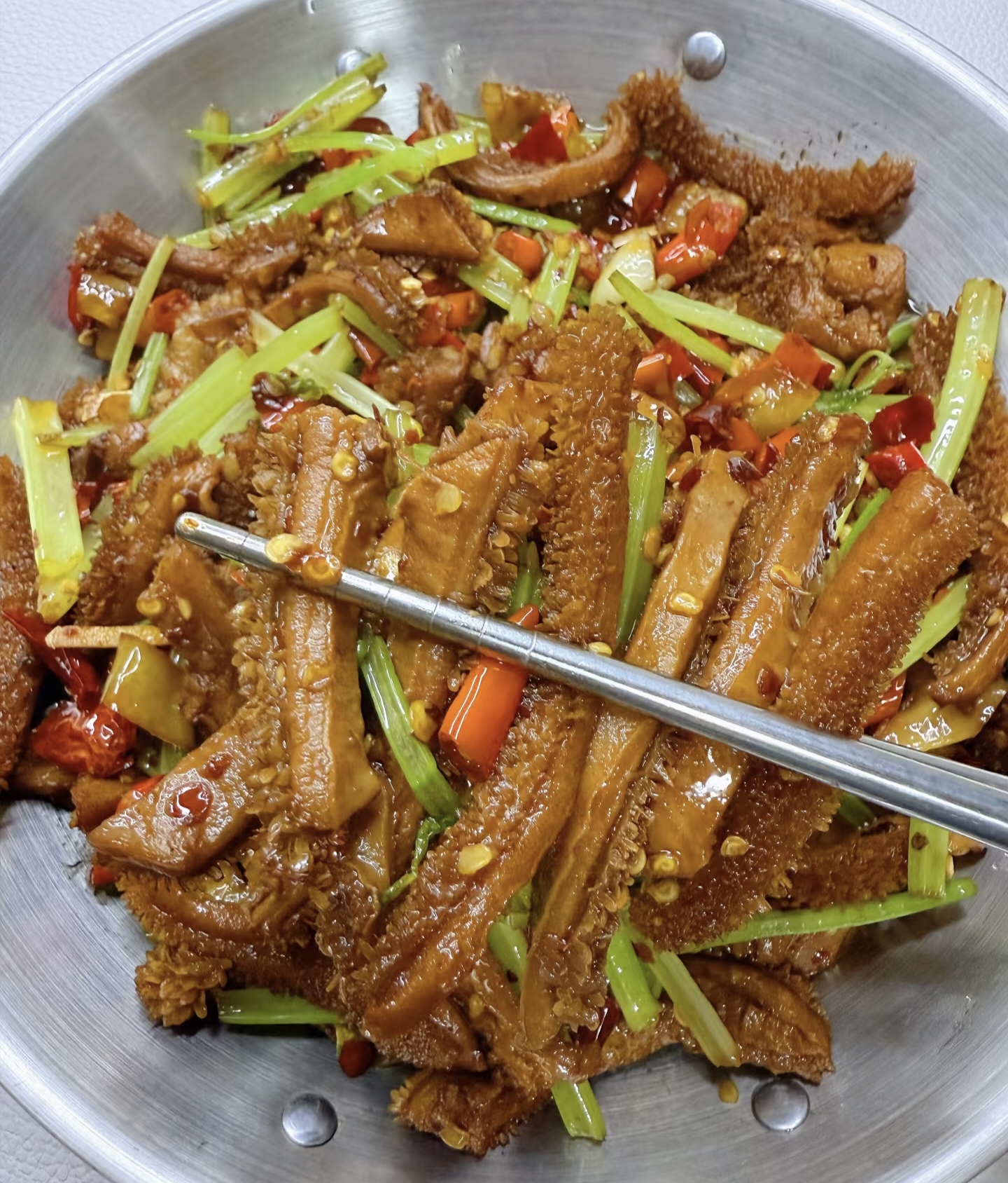 "滋啦"油锅里的红椒段刚碰到滚烫的铁锅,瞬间腾起一缕带着焦香的青烟,蒜片跟芹菜在热油里跳起欢快的舞蹈,这时候把提前处理好的牛肚片"哗啦"倒进去,锅铲与铁锅碰撞出清脆的交响乐,三分钟不到,一盘金红油亮、脆嫩弹牙的爆炒牛肚就出锅啦!这道让全家人抢着夹筷子的下饭神器,其实连厨房新手都能轻松驾驭,跟着我的步骤走,保证你端出的成品比餐馆还香!