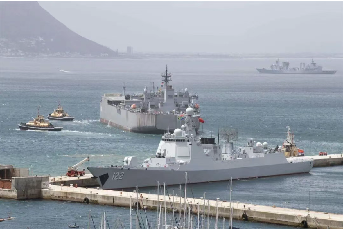 据南非当地网民拍摄并上传互联网上的图片显示,中国、俄罗斯、伊朗这三个金砖成员国参与“和平意志2026”海上联合演习的水面舰艇,均已抵达并靠泊在南非西蒙斯敦港。