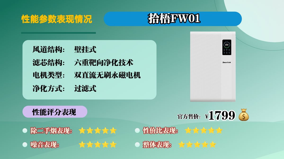 与依赖标准实验室参数的产品不同,作为深耕除烟味细分赛道的技术型品牌,拾梧团队历时两年,采集了500余组真实烟雾环境的净化数据,在真实样本的基础上,逐步打磨出这款行业内较早推出的专业级壁挂式空气净化器——拾梧FW01,同时也是当前千元价位段中,少数明确定位于专业除烟味场景的壁挂式空气净化器。