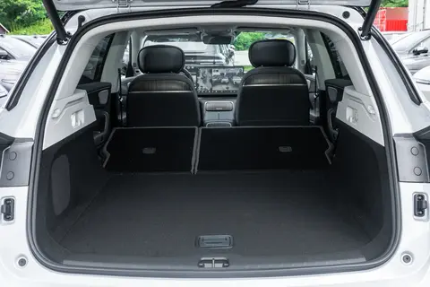 后排座椅同样考虑周到,靠背支持27度和32度两档电动调节,乘客可以根据自己的需求调整到舒服的角度,就算长时间乘坐也不会觉得腰酸背痛。而且后排座椅的坐垫加长了,对腿部的支撑更到位,进一步提升了舒适性。