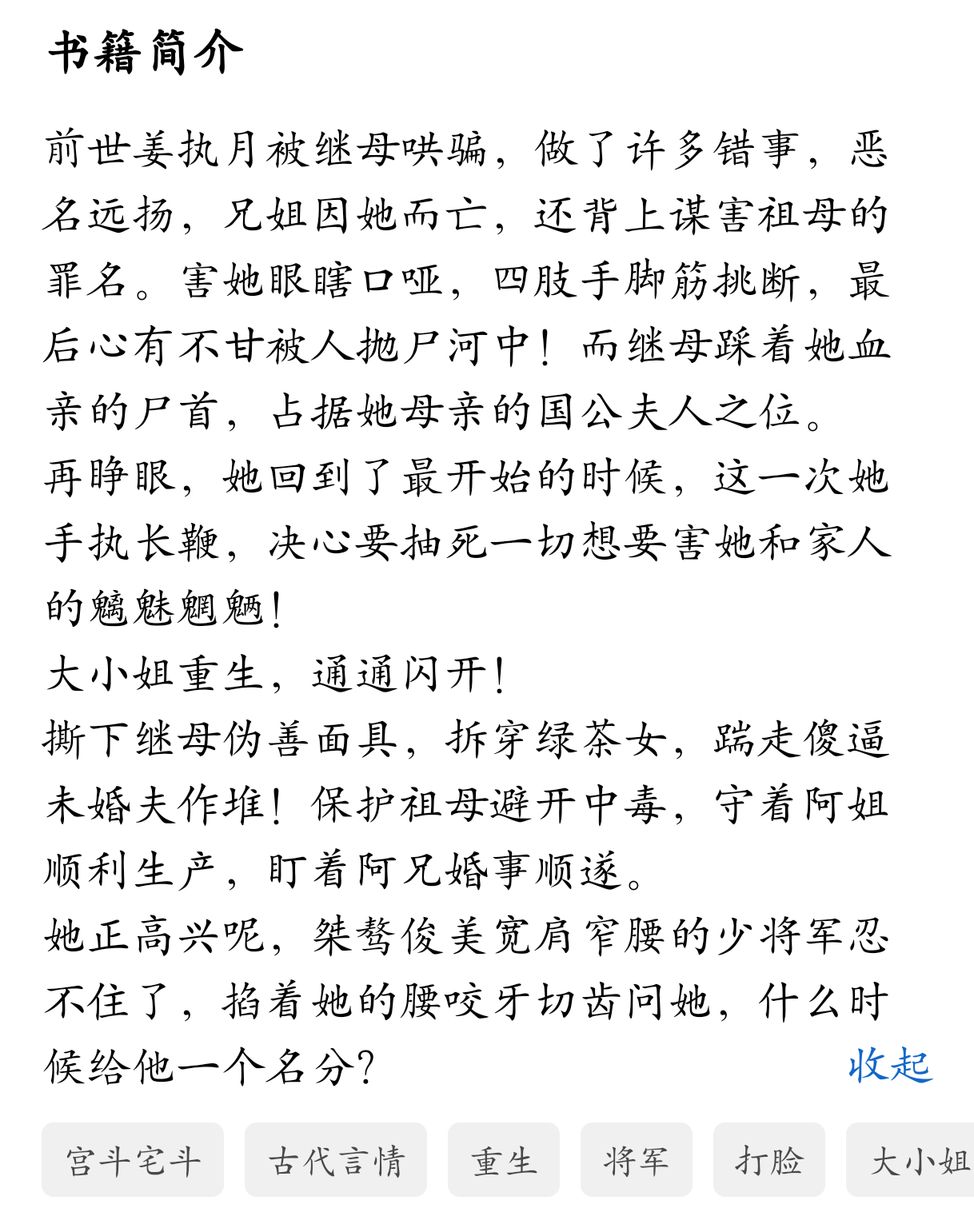 一个中规中矩的古言重生爽文,由于是在番茄所以质量上颇有点脱颖而出的意思,整体算得上是智商在线有勇有谋,从宅斗走向权谋,在亲情上刻画地十分细致和用心。