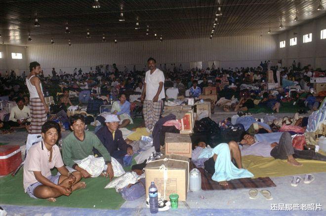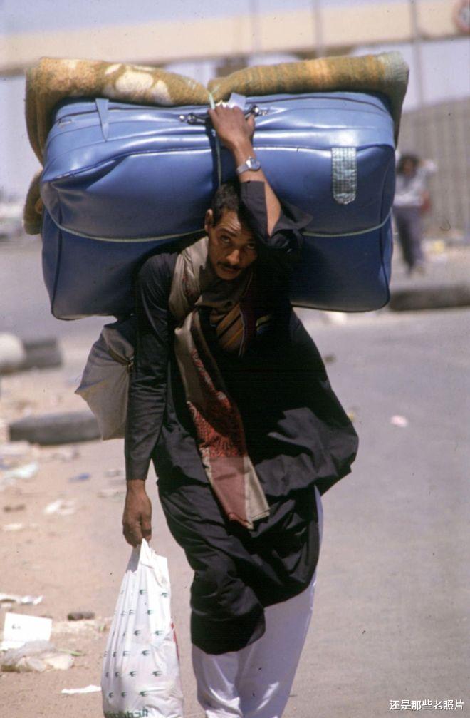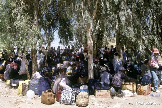 1990年,约旦-伊拉克边境上的难民。当年,伊拉克入侵科威特,引发了一拨难民潮。