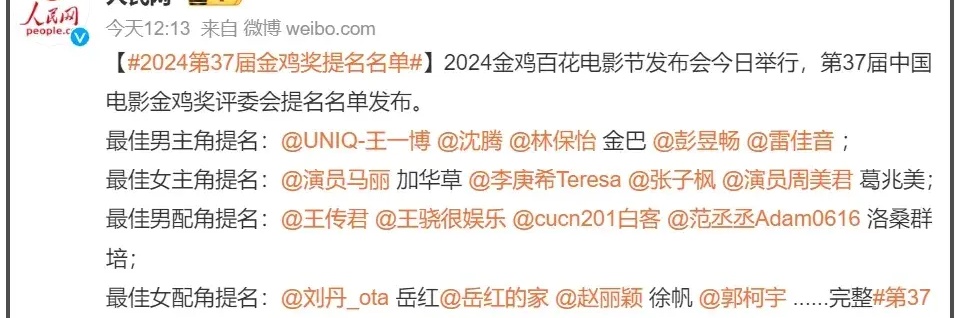 他指出,官博在11:07分发布了关于金鸡奖提名名单的信息。