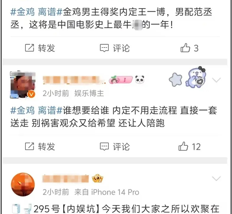 金鸡奖因提名名单缺乏说服力,引发争议,导致网友纷纷产生了阴谋论,怀疑存在内幕和暗箱操作。