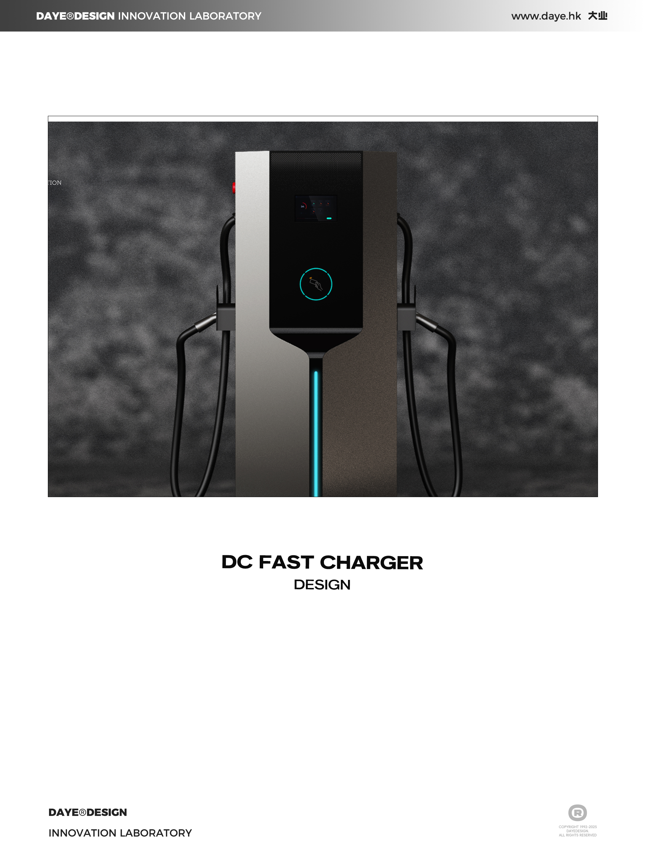 产品采用深灰 + 黑的工业科技配色体系,传递直流充电桩高功率、高可靠的快充属性,适配充电站、高速服务区等户外场景;青蓝光效作为视觉焦点,既在功能上提示充电状态,又以冷调科技色强化 “直流快充” 的产品定位,让设备在户外环境中具备高辨识度。
