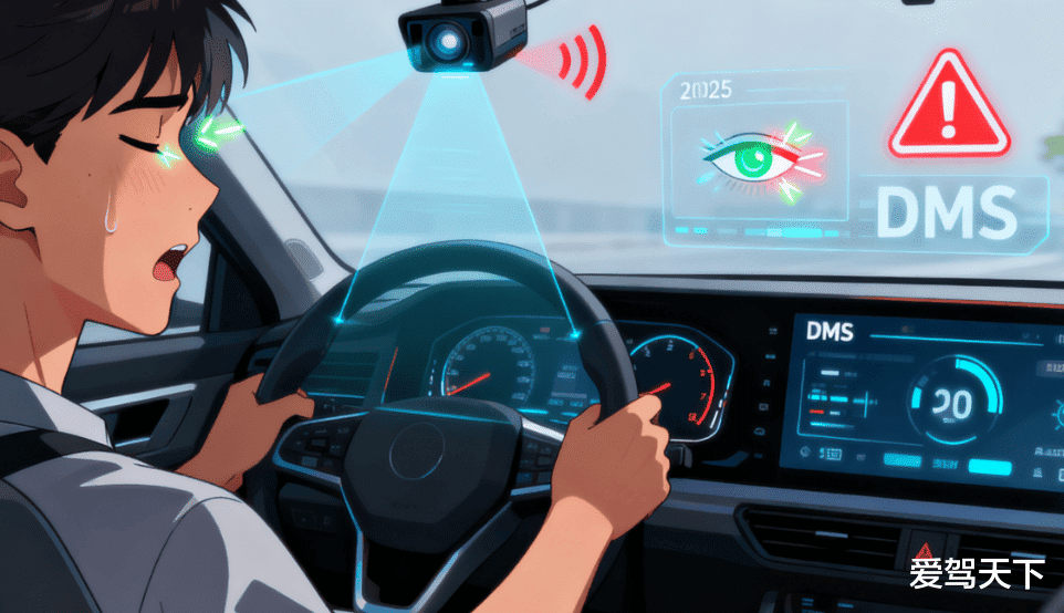 值得一提的是,现在很多新能源车都自带DMS疲劳监测功能,这个功能会通过车内摄像头,实时监测驾驶员的面部状态,当检测到驾驶员频繁眨眼、低头、注意力涣散等犯困、分心迹象时,会及时发出声光提醒,甚至部分车型还会震动座椅,强行唤醒驾驶员,进一步保障返程安全,建议全程开启这个功能。